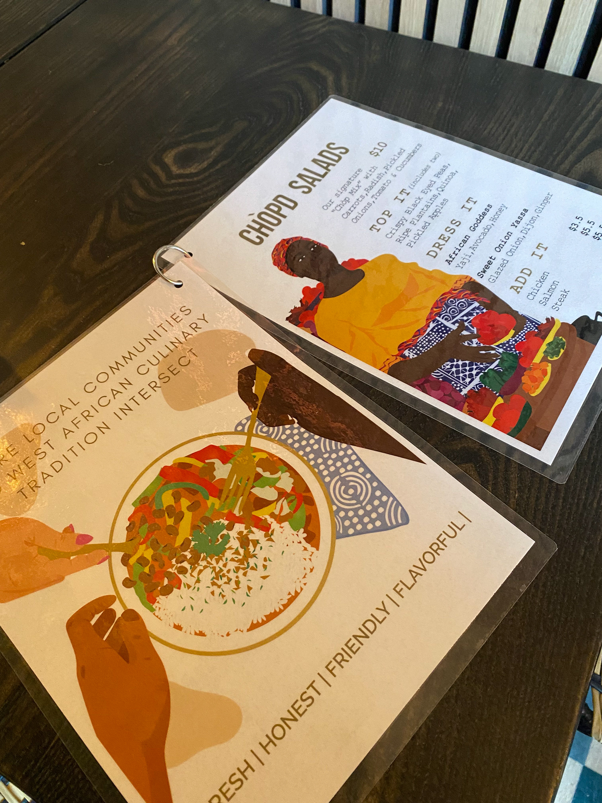 Custom restaurant menu board, material & merch design according to established logo and brand guide