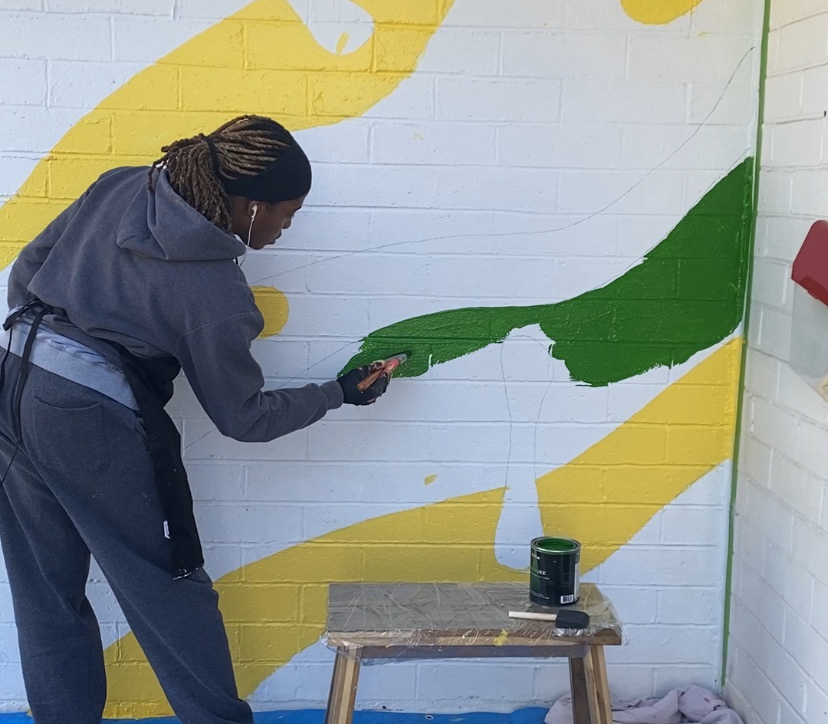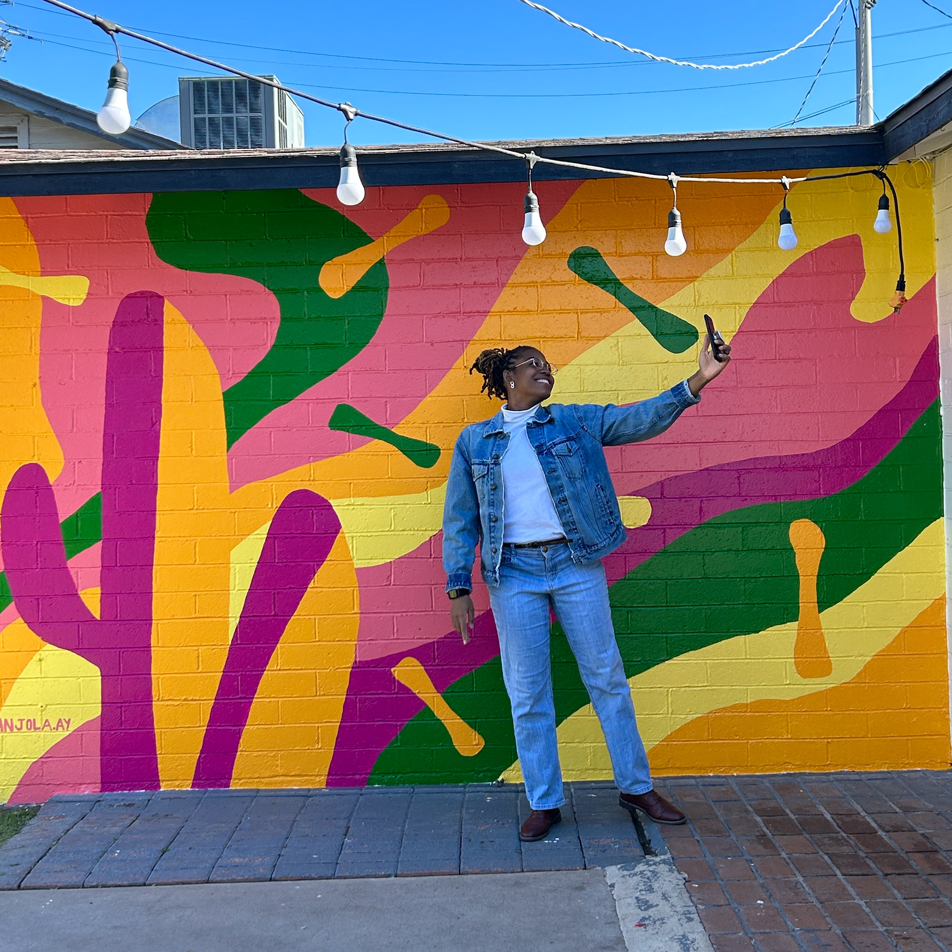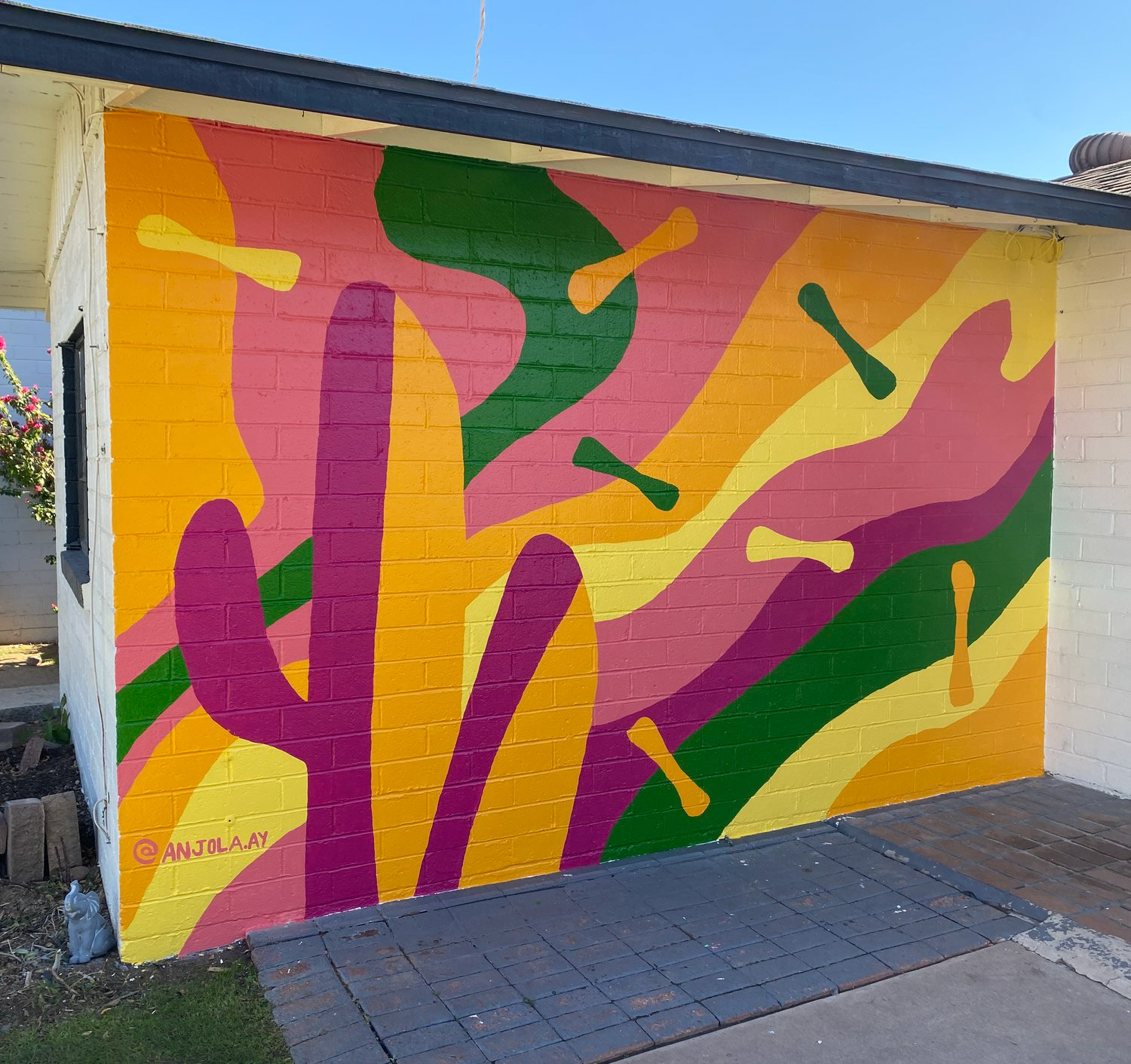 A 93 sq. ft. exterior vibrant mural on Brick textured wall in Glendale, AZ