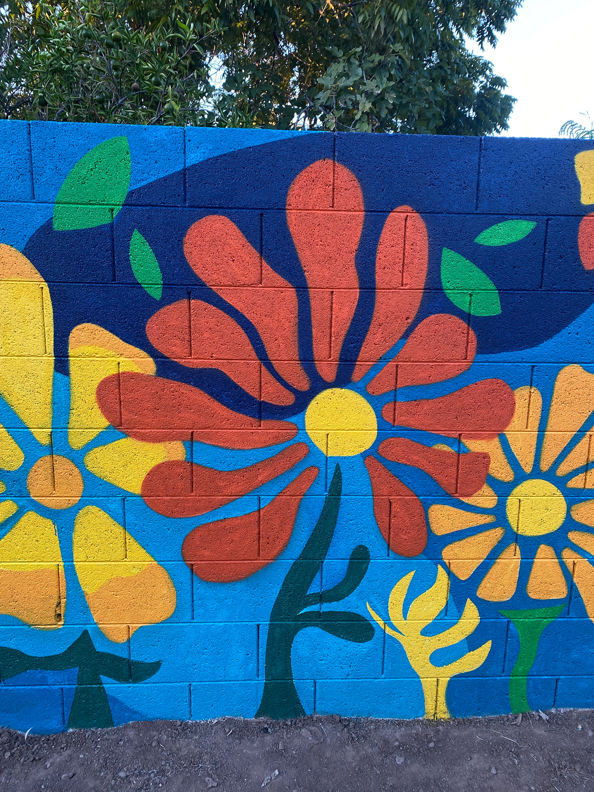 An exterior vibrant mural on Brick textured wall in Tempe, AZ